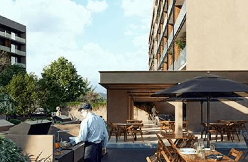 Asadores individuales • Asador colectivo • Insta bar + Social kitchen • Eco-pool • Wellness deck • Relax zone • Imagination playground • Social Pet Park • Cine al aire libre